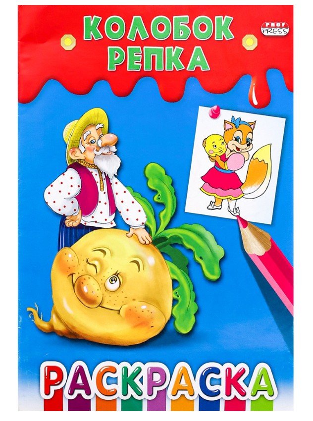 Раскраска А5 Ч/Б. КОЛОБОК.РЕПКА (Р-7643) (8л.,на скрепке,обл.-мелов.бумага)