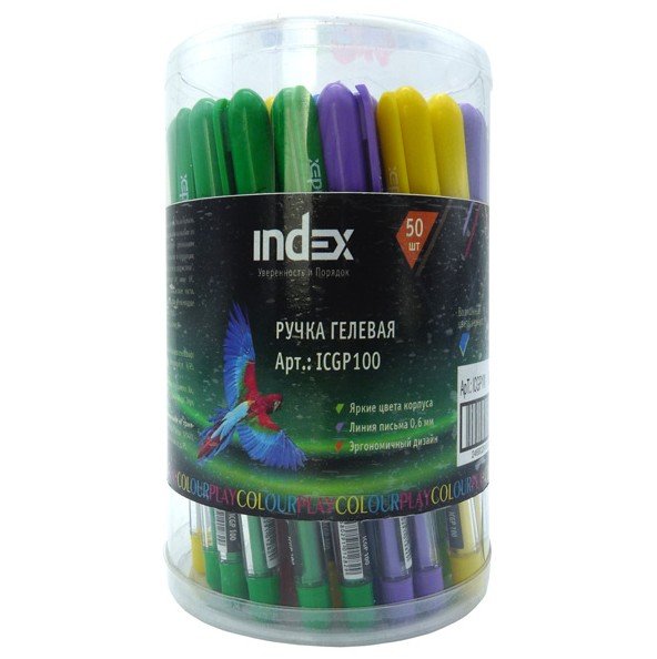 Пластиковый прозрачный корпус, цветные элементы декора, рифление под пальцы. Чернила на масляной основе. Толщина линии - 0,4 мм. Диаметр шарика - 0,6 мм. Синие чернила. Цвета в ассортименте.