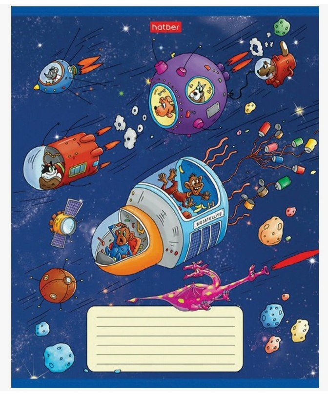 Тетрадь 18л. HATBER клетка, обложка картон, Космическое приключение (5 видов в спайке),18Т5В1 106263