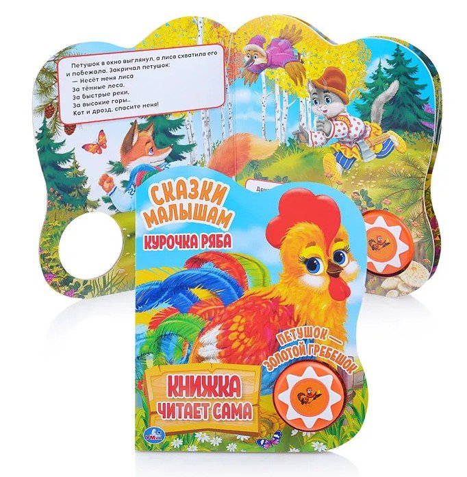 Курочка Ряба и Петушок - золотой гребешок (1 кнопка, 5 нажатий, книга читает сама)
