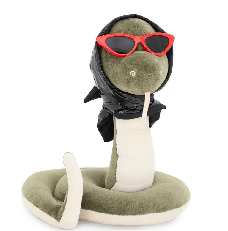 Ирэн стильная штучка. На ней модные красные очки и лаковый черный платок. Ирэн выполнена из трикотажа зеленого цвета.