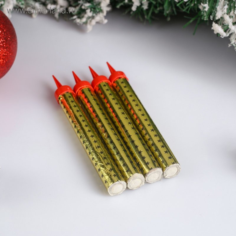 Свечи фонтаны для торта "Золотые искры", 12,5 см, 40 секунд, 4 шт